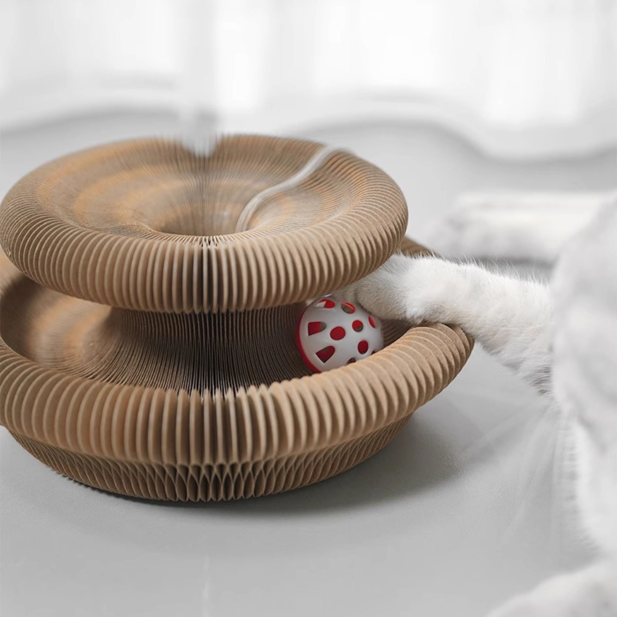 Interaktywny Labirynt łączy w sobie funkcje tunelu, drapaka, toru z piłką oraz legowiska. Elastyczna konstrukcja pozwala na dowolne zmienianie kształtu, dzięki czemu Twój kot nigdy się nie znudzi. Może drapać, skakać, popychać piłkę czy po prostu odpoczywać w przytulnym miejscu.
